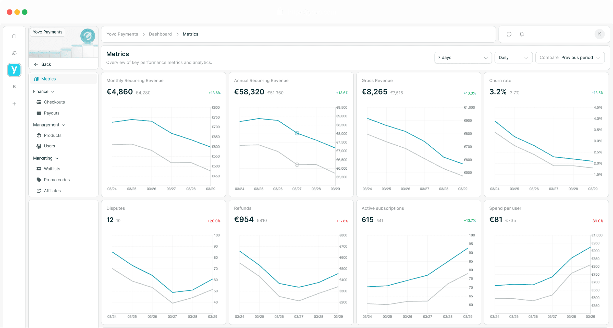 You keep more of what you earn. Our fees are significantly lower than what European platforms charge - and you get more features on top. Embedded banking, instant payouts, a merchant card, and treasury yield on your balance. One platform instead of four separate tools duct-taped together.